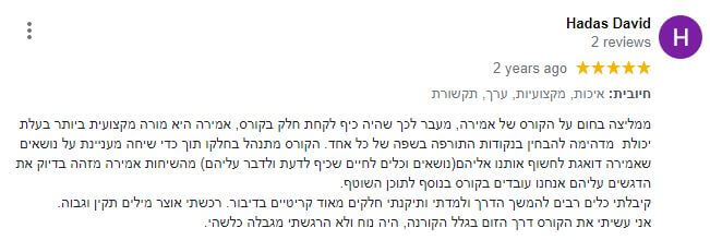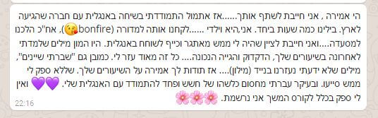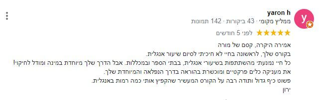 יחד ננהל שיחות מעשירות באנגלית, נעלה דילמות, מטרות, שאיפות אישיות ועסקיות ועוד תכנים מעולם ההתפתחות האישית והעסקית, ובכלל – נלמד לאהוב את השפה.